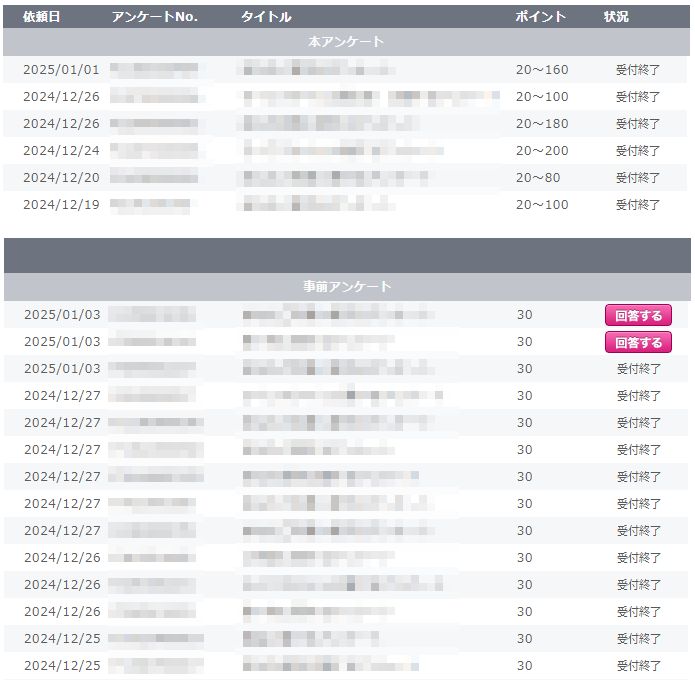 事前アンケートはそれこそ毎日来ますし、空き時間にコツコツ答えていれば本アンケートの依頼も来ます。