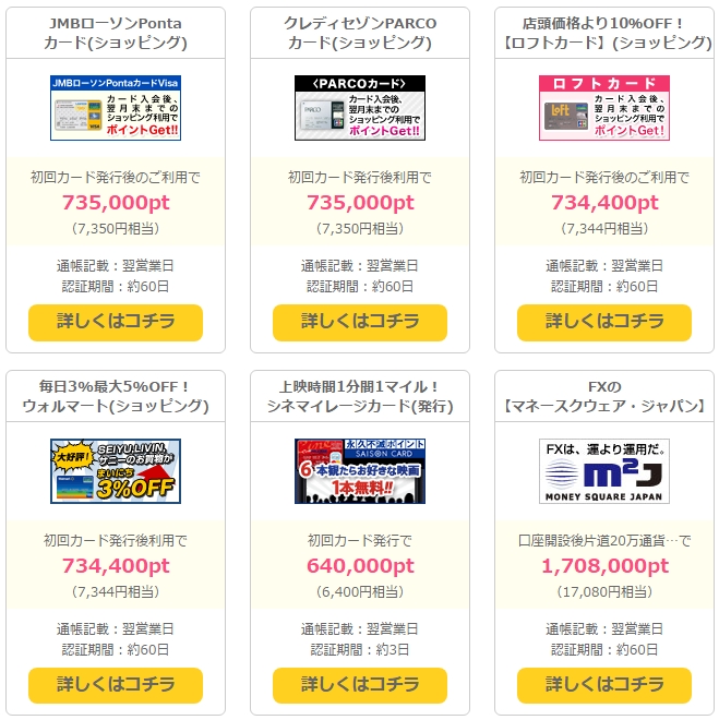 こちらは対象広告の一部ですが、ロフトカードやウォルマートカード等は結構いいかもしれません。特にウォルマートは西友を利用する人には絶対おすすめ!私も持っていて、ほぼ毎日使っています。